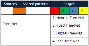 When building Tree-Net, with synthesizing from 4 sources. Tree-Net is the target and the shared patterns |